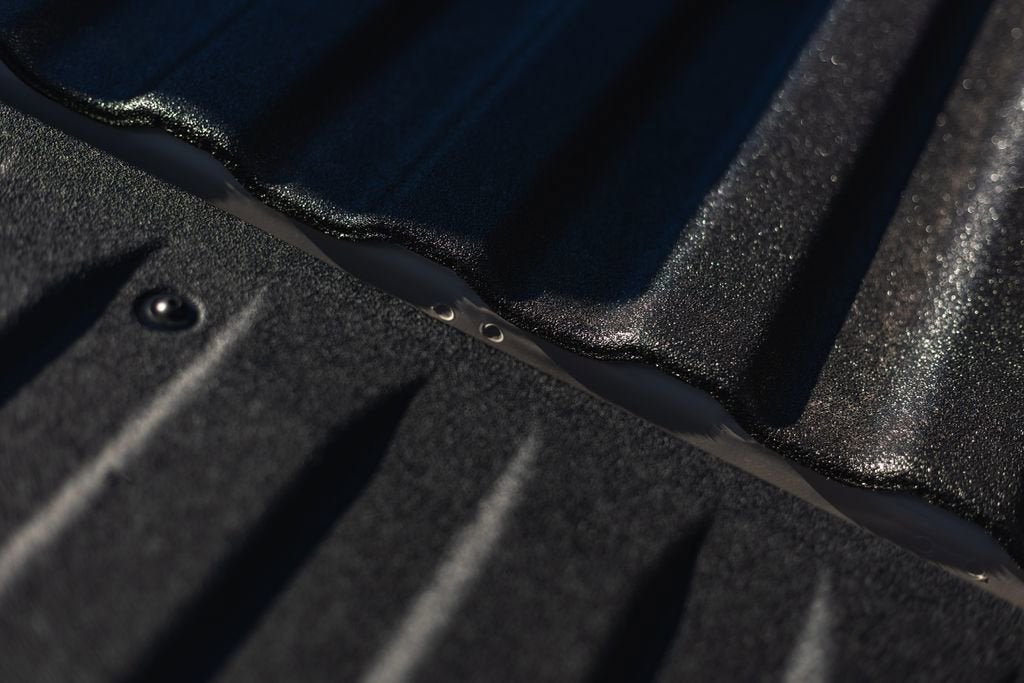 - Covers the bed interior surface below side rails, front bed top rail, gauge hole plugs and tie-downs