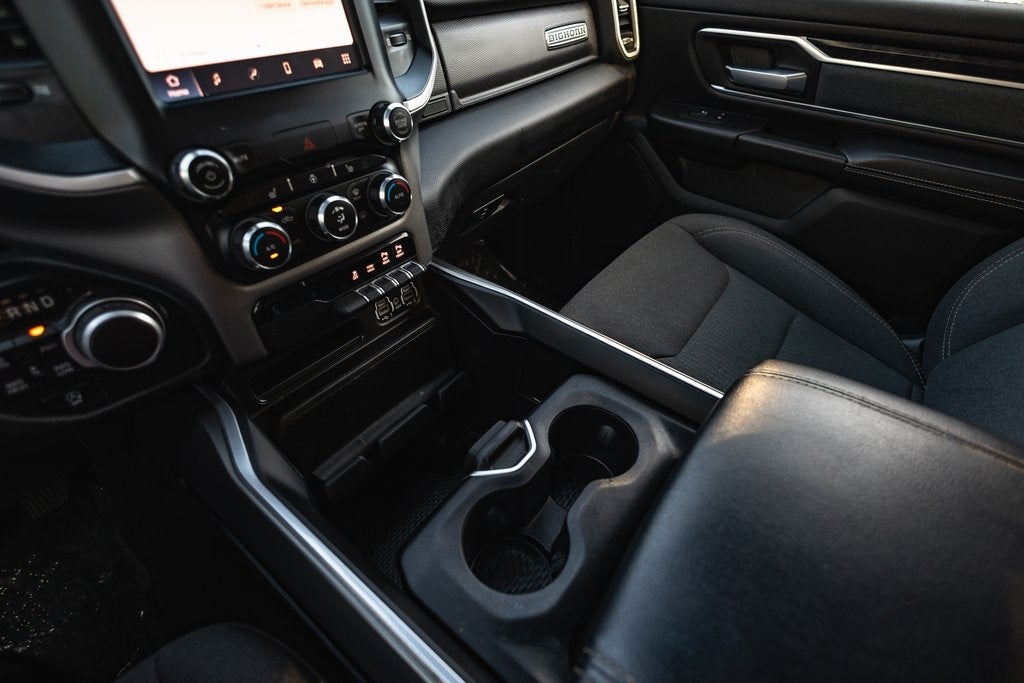 Discover the 2022 Ram 1500 Big Horn, Lone Star trim, a pre-owned pickup that combines power and versatility with a touch of sophistication. This left-hand drive truck is equipped with a 3.6-liter V6 engine, delivering an impressive 305 horsepower, making it ready to take on the day with ease. The 4WD system ensures you can tackle any terrain, while the hydraulic brake system with standard ABS and traction control offers peace of mind on the road.